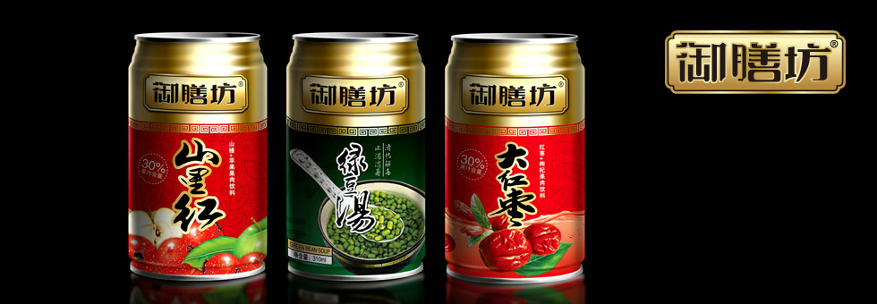 項目背景:御膳坊的系列健康飲品分為綠豆湯、山里紅、大紅棗三款,都是谷物和水果中的滋補佳品。在包裝設計中,我們運用原料天然誘人的形態(tài)和色彩來區(qū)分系列產(chǎn)品,并在罐頂采用金色背景裝飾和中式古典紋飾來凸顯高品味的產(chǎn)品特質(zhì)。